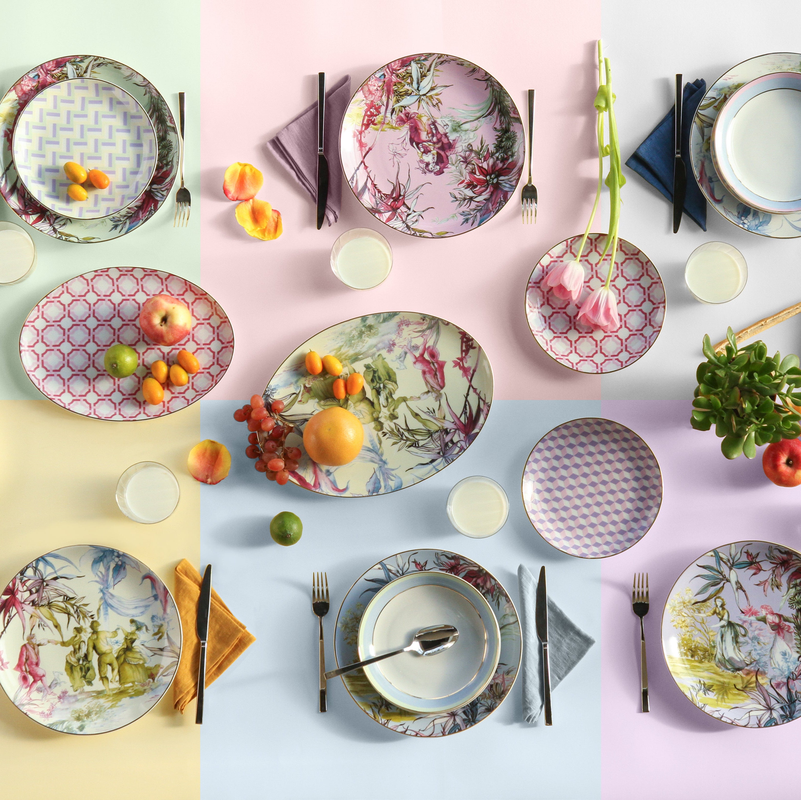 קולקציה חדשנית ורב שימושית, בגווני פסטל ובשוליים מעודנים במיקרו-אלמנטים דקורטיביים. העיצוב מעניק לכל שולחן טאץ' רענן ובעל נוכחות ייחודית.